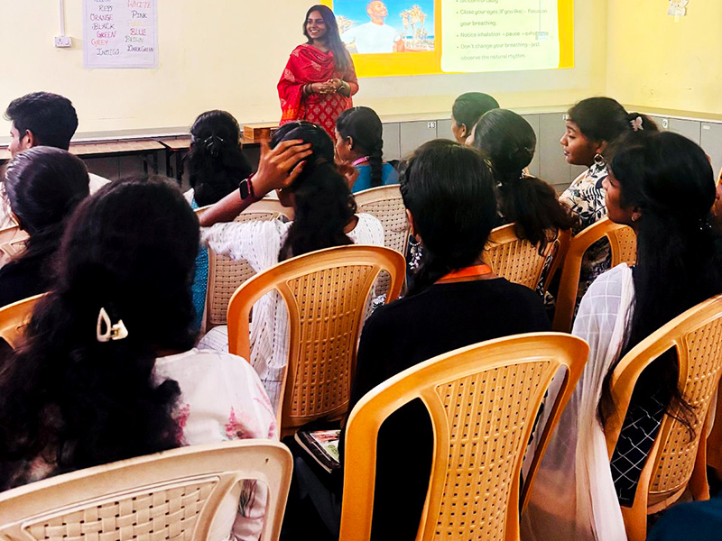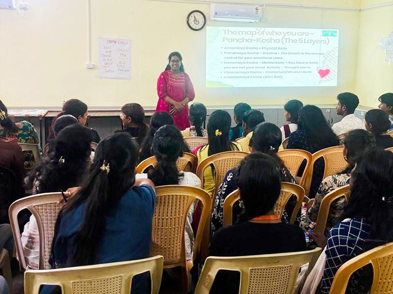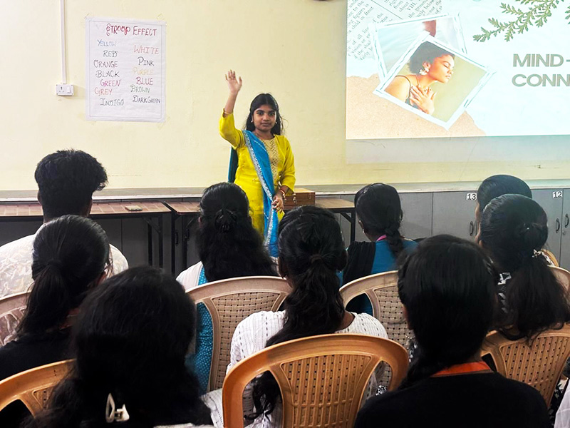 This one day workshop introduced students to culturally rooted mindfulness practices and indigenous Indian approaches to emotional regulation. Participants experienced breath awareness techniques, grounding exercises, and attention based practices that can be integrated into daily life. The session emphasized the psychological relevance of traditional knowledge systems in promoting mental well being.