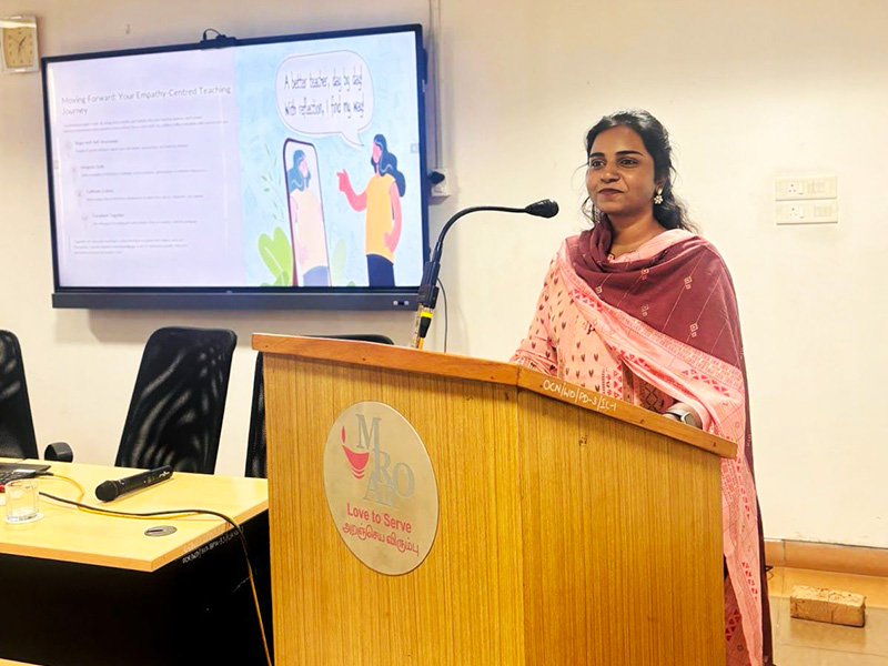 At Omayal Achi College of Nursing, we conducted a Faculty Development Programme on holistic educator well being and empathy. The session encouraged educators to reflect on emotional balance, compassionate communication, and sustainable teaching practices. This initiative supports healthier academic environments and professional growth within educational institutions.