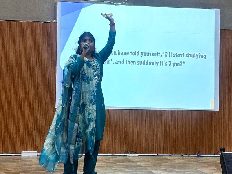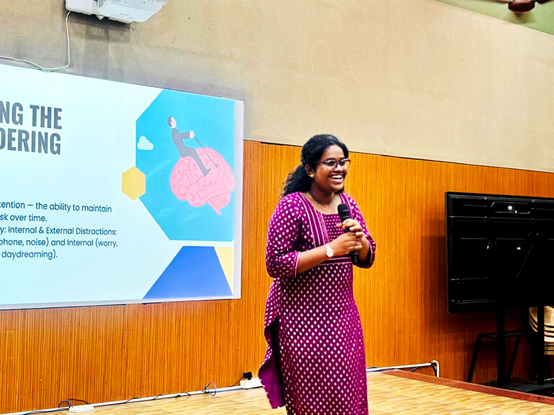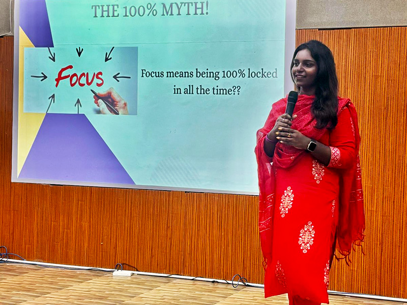 This large scale workshop for undergraduate students focused on clarity of goals, sustained attention, motivation building, and resilience during academic and personal challenges. Through reflective exercises and structured psychological strategies, students learned how to strengthen concentration, maintain inner drive, and navigate setbacks with confidence. The strong engagement and positive feedback demonstrated the growing importance of psychology based student development programs.